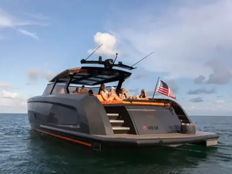 Disfrute de este lujoso yate de alquiler en Miami Beach Marina, Miami Beach, Florida. El Vanquish de 58 pies, conocido como “SexSea”, cuenta con un elegante casco escalonado...
