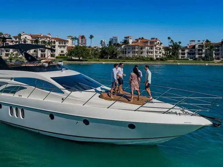 Deleite sus ojos en este yate para alquilar en Miami, Florida. Nuestro impresionante 50′ Azimut perfecto para una variedad de experiencias de charters, desde despedidas de...